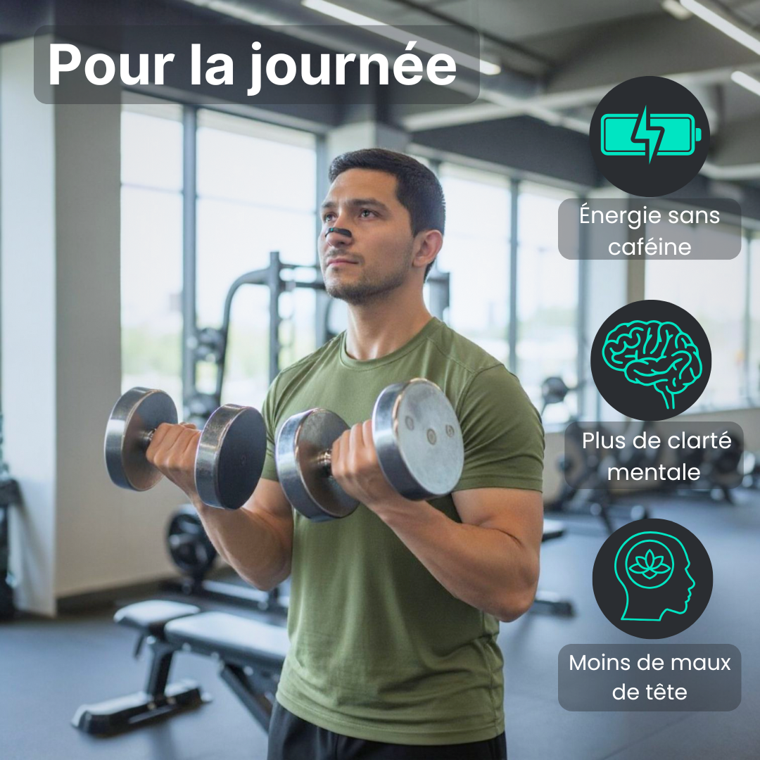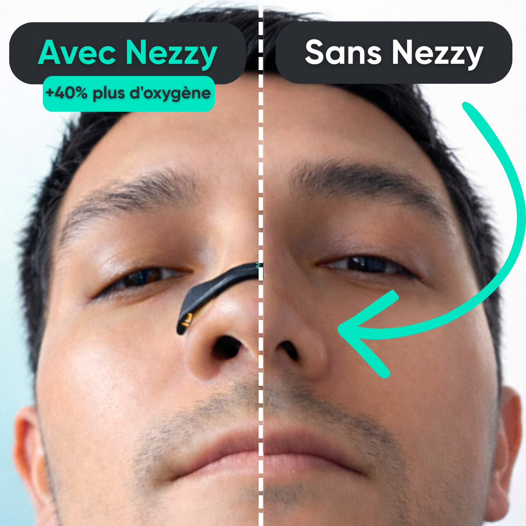 Grâce à son système innovant et non invasif, Nezzy ouvre naturellement tes voies respiratoires et augmente ton flux d’air jusqu’à +40 %. Résultat : tu respires plus librement, tu récupères mieux, et ton énergie remonte… sans caféine.