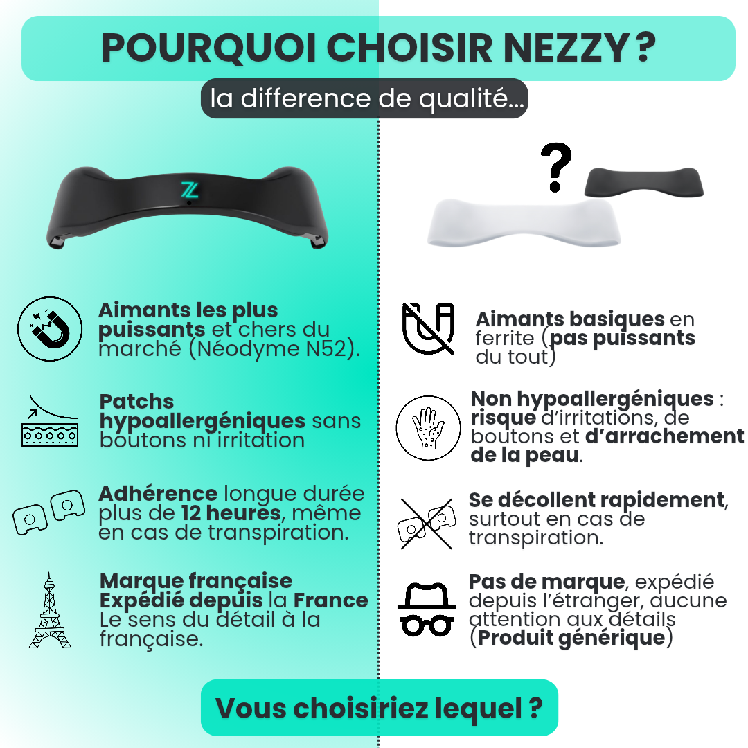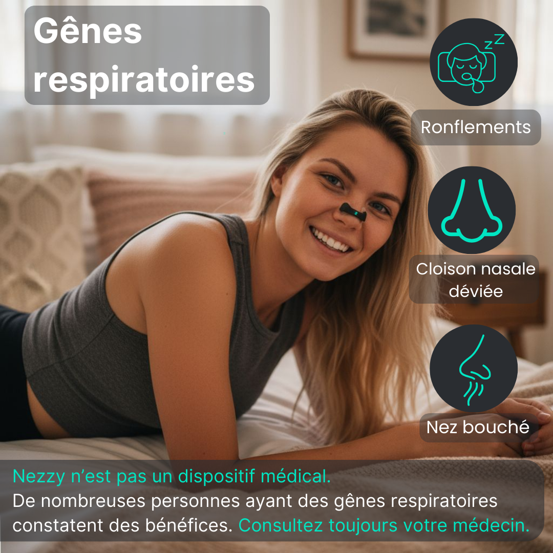 Nezzy, c’est un écarteur nasal magnétique conçu pour mieux respirer, mieux dormir et être plus performant, chaque jour.